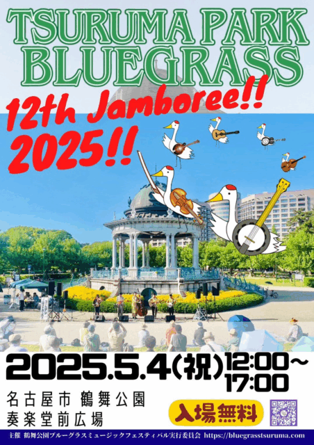 アメリカ・ケンタッキー州発祥のアコースティック音楽「ブルーグラス」を中心にした野外音楽イベント「鶴舞公園ブルーグラスミュージックフェス2025」が開催されます。軽快で心躍る演奏や美しいハーモニーの生演奏を、名古屋・鶴舞公園の奏楽堂広場で体験できる特別な一日。入場は無料で、同時開催の花まつりとあわせて家族や友人と一緒に楽しめます。ブルーグラスの魅力を広く伝えるために始まったこのフェスは、音楽ファンはもちろん初めての方にもおすすめです。