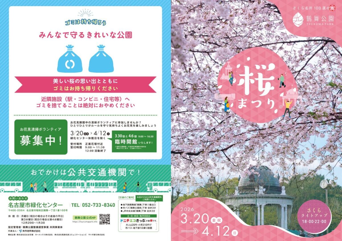 名古屋で3月に開催される桜イベントとして、鶴舞公園を会場に桜のライトアップやキッチンカー・露店の出店が予定されているイベントです。